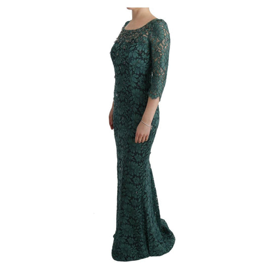 Dolce & Gabbana Green Floral Lace Maxi Floor Length Dress