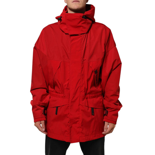 Dolce & Gabbana Red Nylon Hooded Men Full Zip Parka Jacket