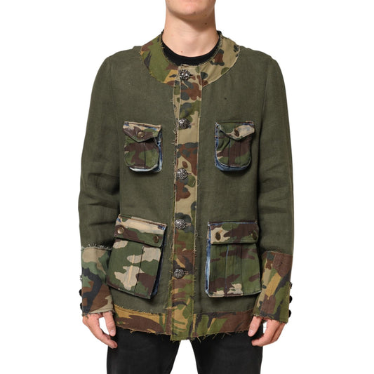 Dolce & Gabbana Brown Camouflage Linen Button Down Jacket