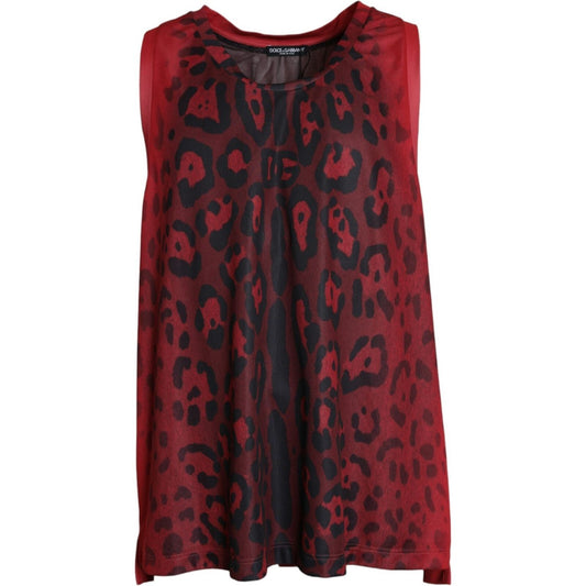 Dolce & Gabbana Red Leopard Print Sleeveless Men Tank T-shirt