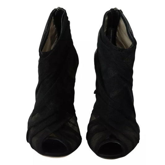 Dolce & Gabbana Black Silk Stretch Mesh Sock Boots Shoes