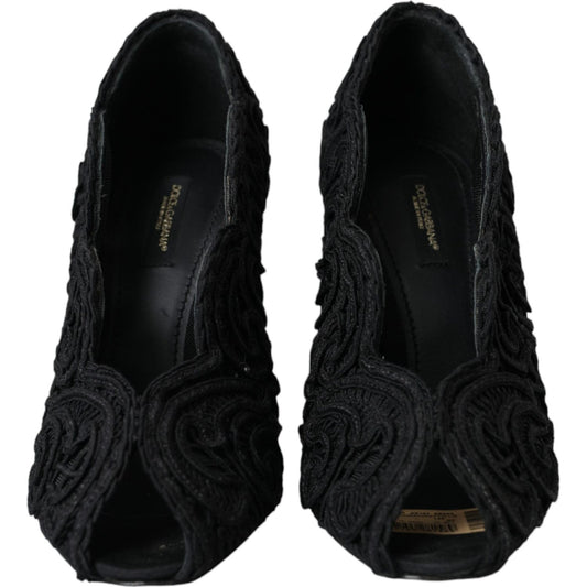 Dolce & Gabbana Black Cordonetto Ricamo Pump Open Toe Shoes