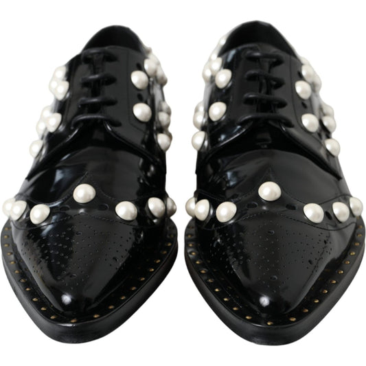 Dolce & Gabbana Black Leather Faux Pearl Dress Broque Shoes