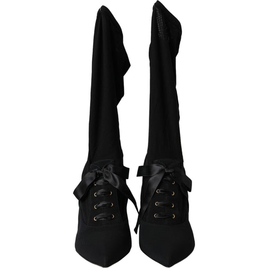 Dolce & Gabbana Black Stiletto Heels Mid Calf Boots Shoes