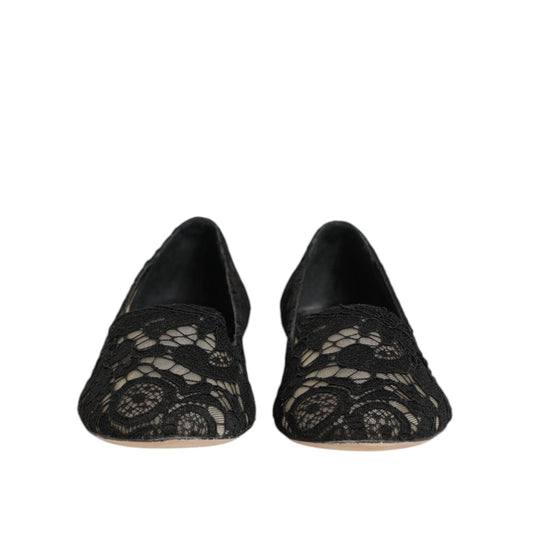 Dolce & Gabbana Black Taormina Lace Slip On Flats Shoes