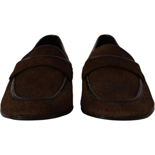 Dolce & Gabbana Shoes Dress Loafers Brown Leather Slip Shoes