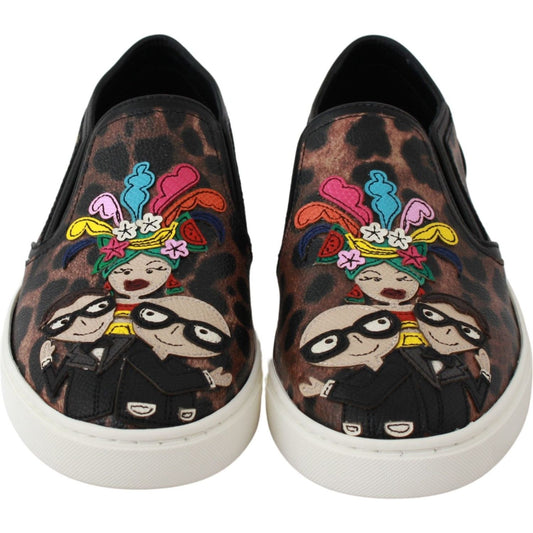 Dolce & Gabbana Brown Leopard Print Crystals Loafers Flats Shoes