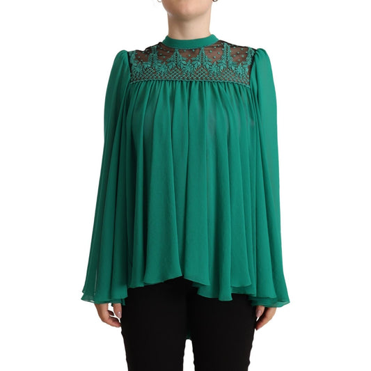 Philosophy Green Lace Polyester Long Sleeves Pleated Top Blouse