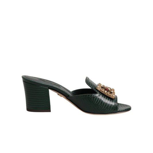 Dolce & Gabbana Green Embellished Heels Slingbacks Shoes