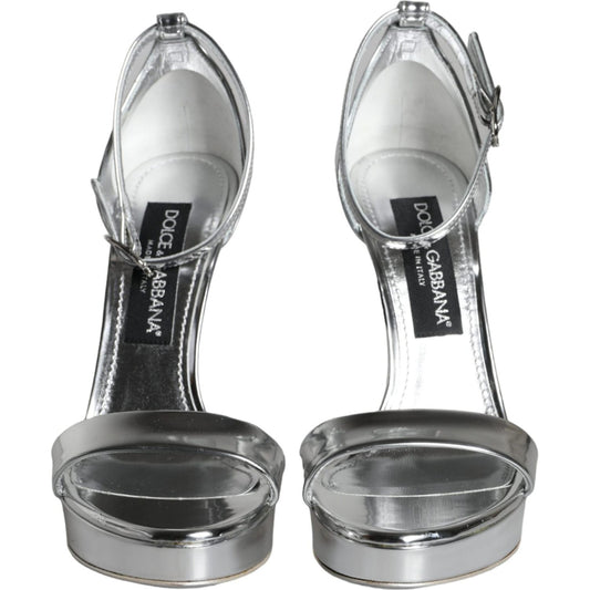 Dolce & Gabbana Silver Keira Leather Heels Sandals Shoes