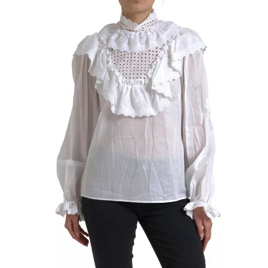 Dolce & Gabbana White Cotton Lace Trim Turtle Neck Blouse