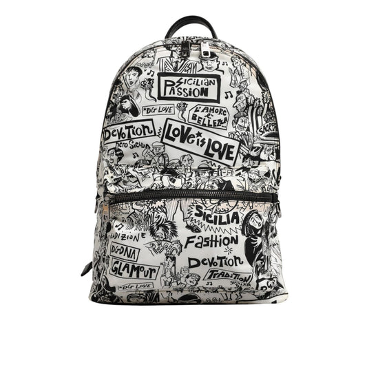 Dolce & Gabbana Black White Graffiti Print School Backpack Men Borse Bag