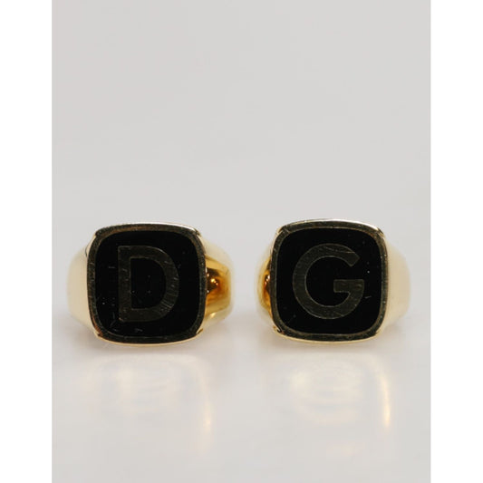 Dolce & Gabbana Gold-Tone Real Brass Black Enamel "DG" Adjustable Rings