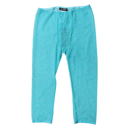 Dolce & Gabbana Light Blue DG Logo Nylon Cropped Tights Underwear