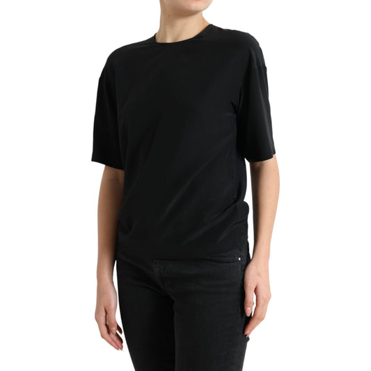 Dolce & Gabbana Black Silk Round Neck Short Sleeve Blouse Top
