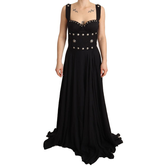 Fausto Puglisi Silk Black Studded Sleeveless A-line Max Dress
