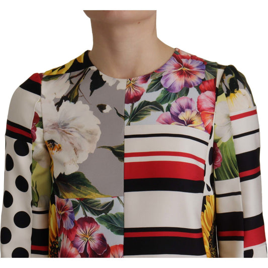 Dolce & Gabbana Multicolor Charmeuse Floral Sheath Jaquard Pachwork Dress
