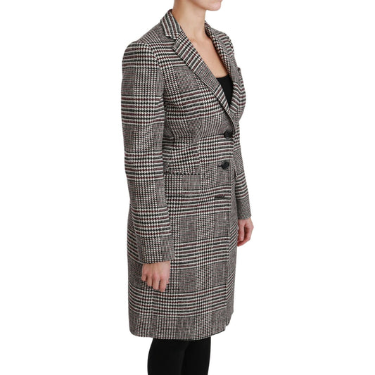 Dolce & Gabbana Black Red Cotton Checkered Over Coat Jacket