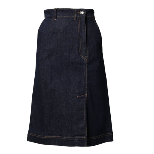 Dolce & Gabbana Dark Blue Cotton A-line Denim Midi Skirt